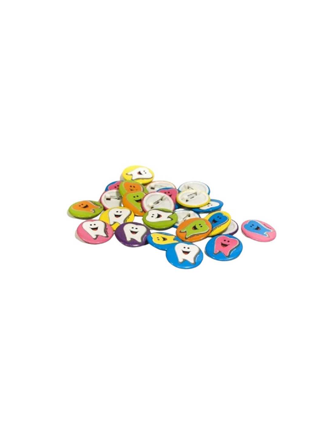 Kolorowe przypinki z uśmiechniętym Ząbkiem dla Dzielnego Pacjenta.