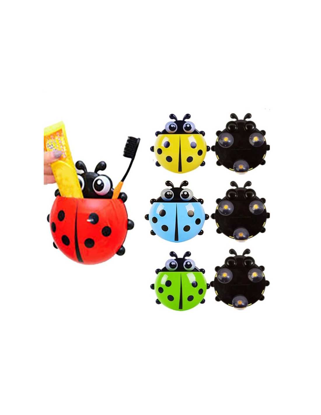 Wesoły uchwyt w kształcie biedronki służy jako miejsce do trzymania szczoteczki i pasty do zębów.