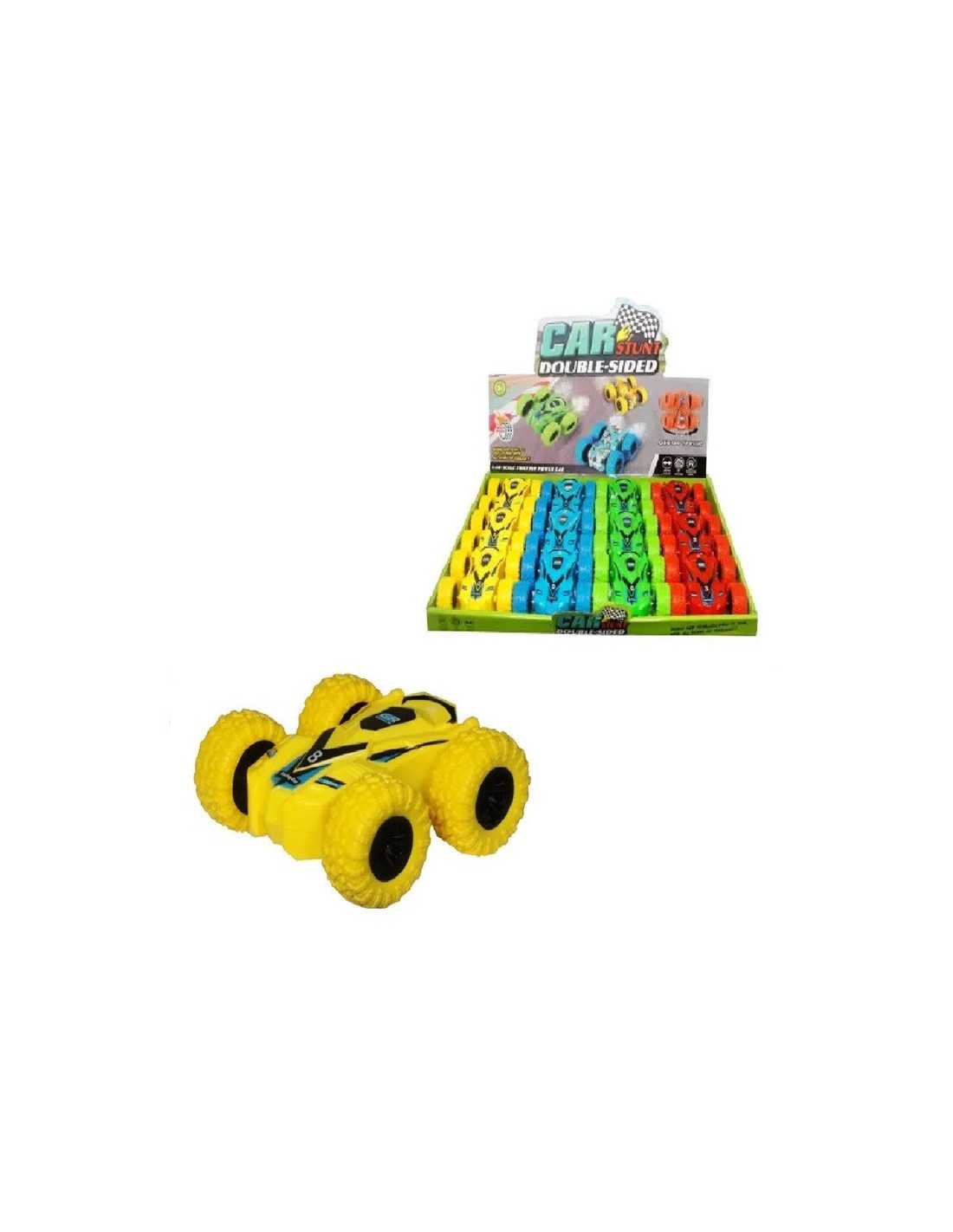Kolorowy plastikowy dwustronny pojazd  tzw. "przewrotka" z napędem.