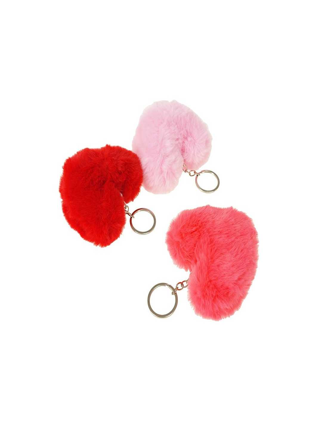 Kolorowy brelok futerko w kształcie serca.