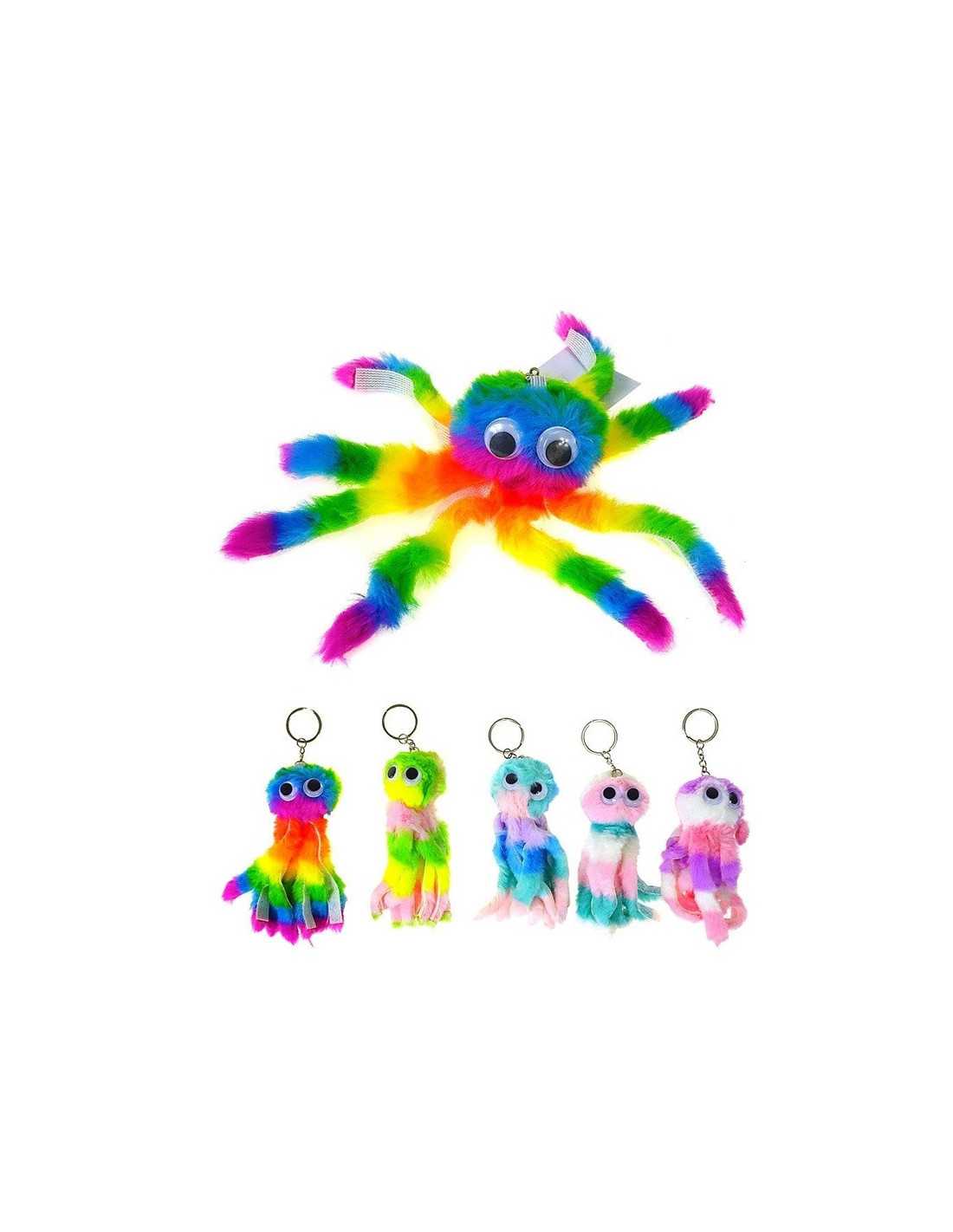 Kolorowy brelok futrzany w kształcie ośmiornicy (długość 13 cm).