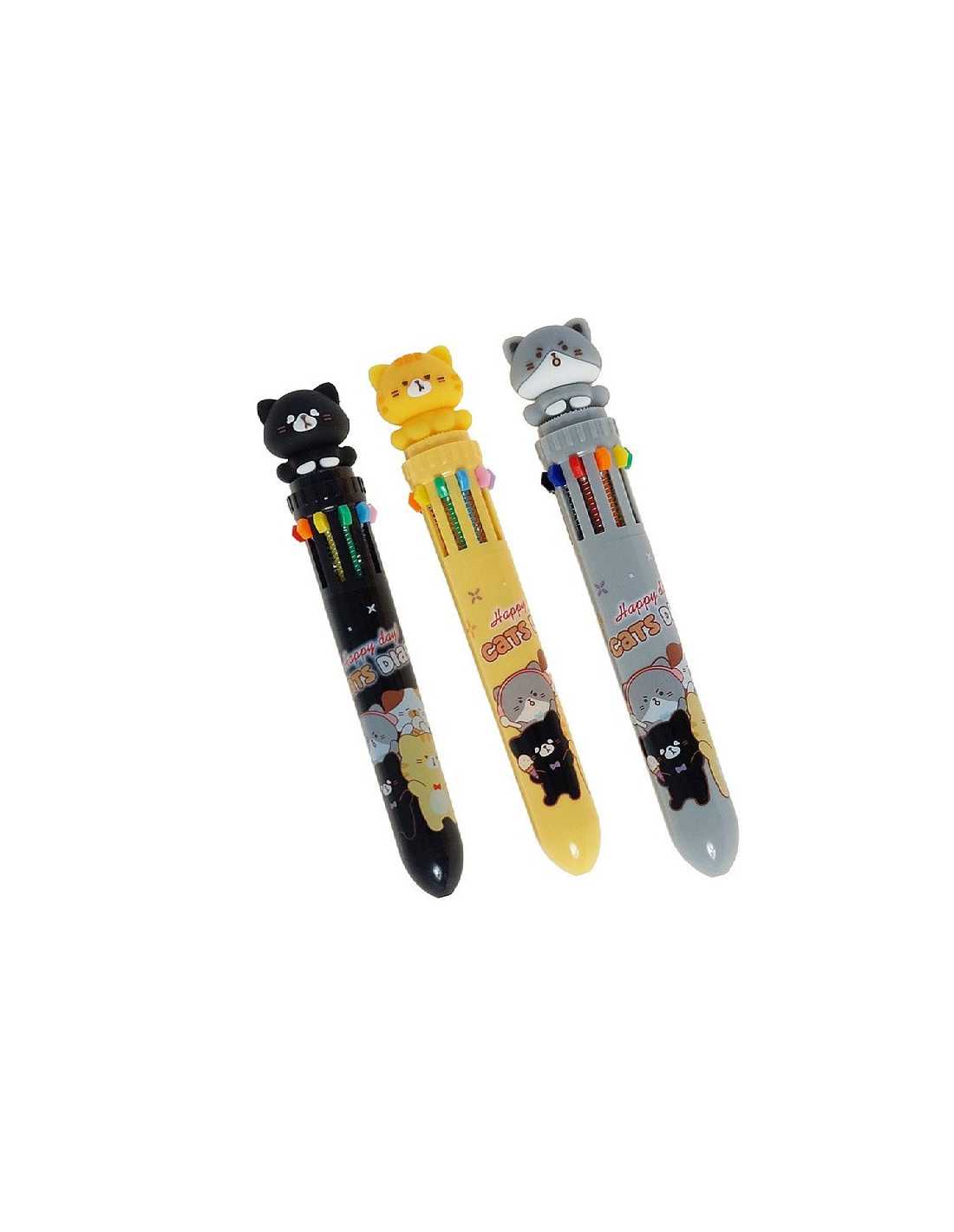 Kolorowy długopis wielokolorowy (10 kolorów) w kształcie kotka.