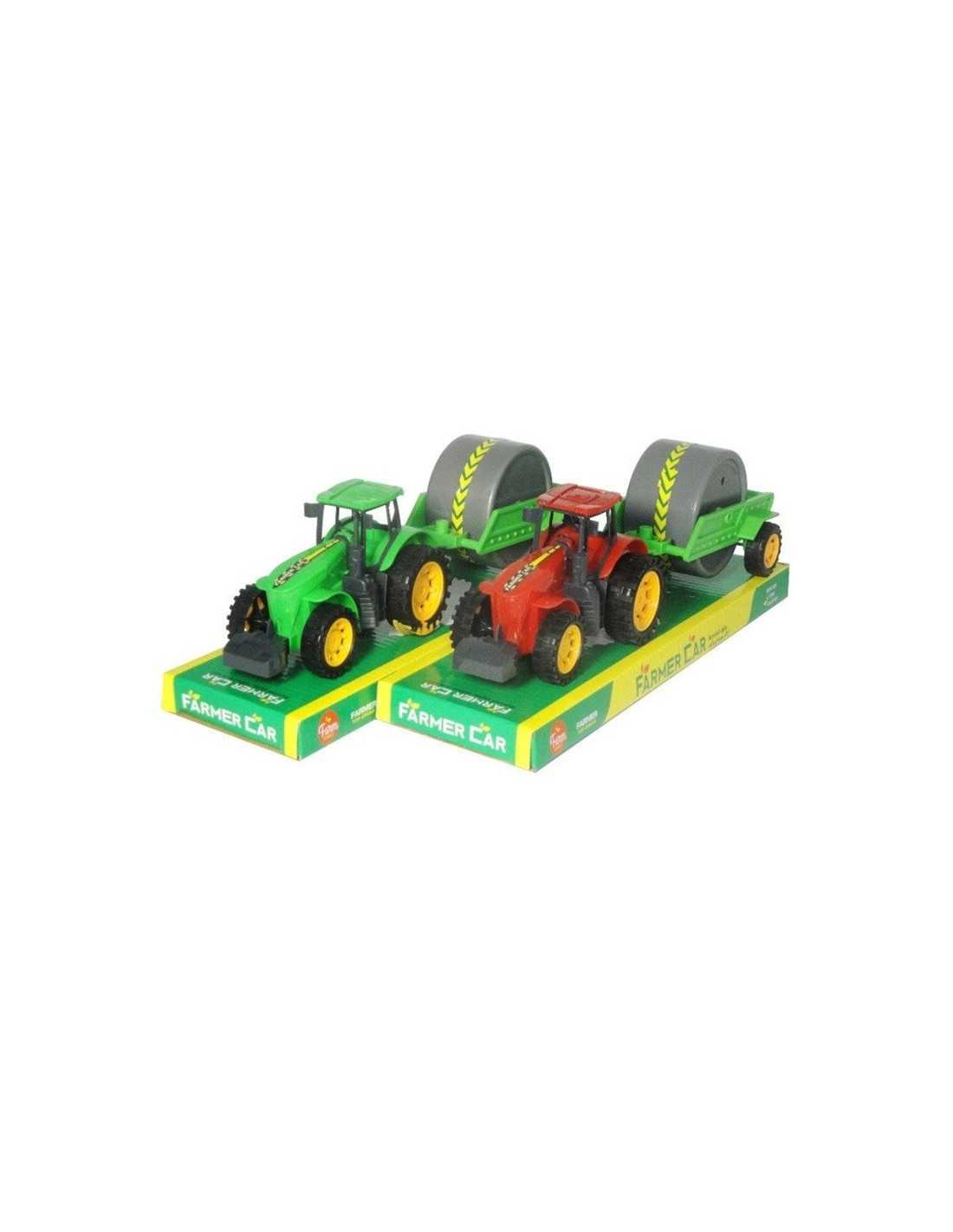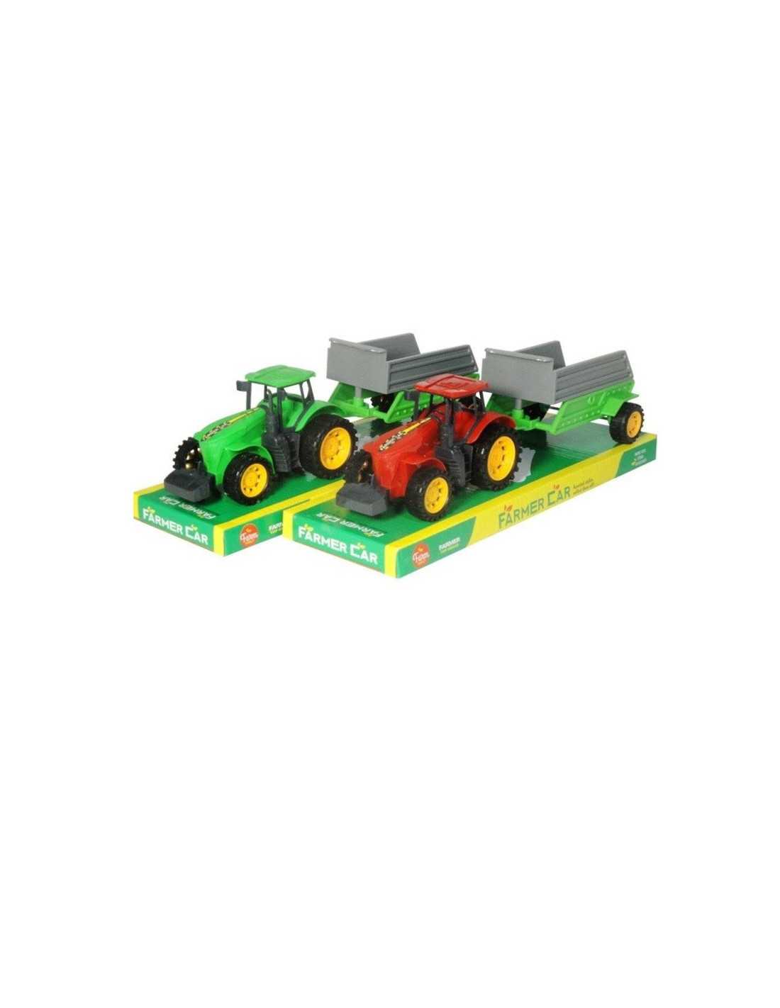 Plastikowy traktor z przyczepą. Zabawka na napęd cierny.