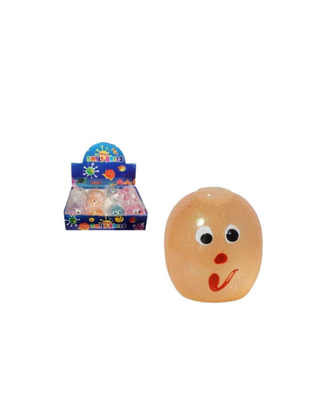 Gniotek antystresowy to wesoły półprzezroczysty brokatowy ludek z śmieszną minką .