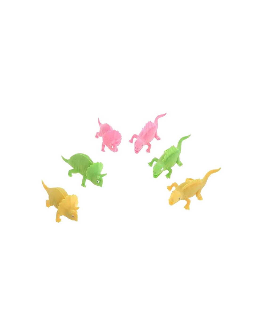 Kolorowy gumowy gniotek w kształcie dinozaura.