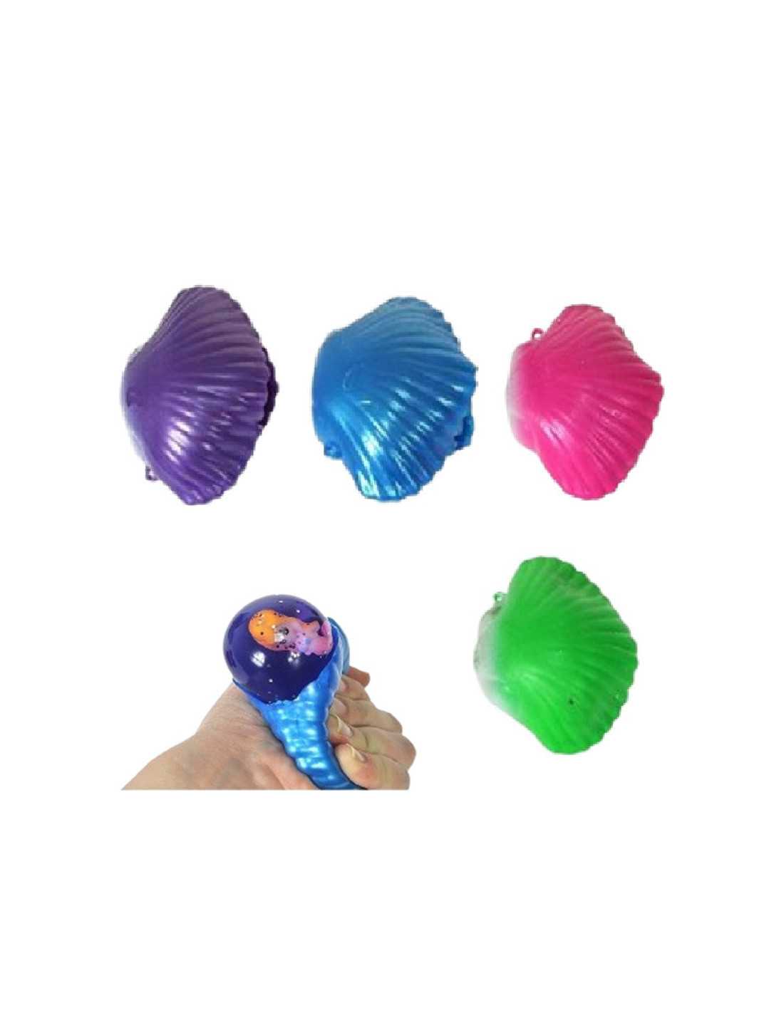 Kolorowy gniotek w kształcie muszli, z którego po naciśnięciu "wychodzi" syrenka.