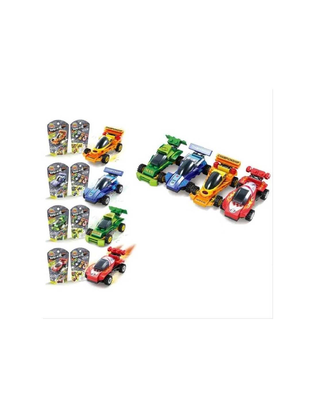 Klocki do składania w kształcie pojazdów sportowych - kartingów.