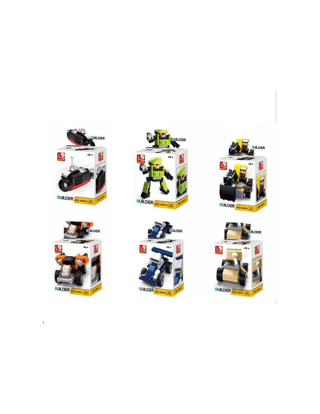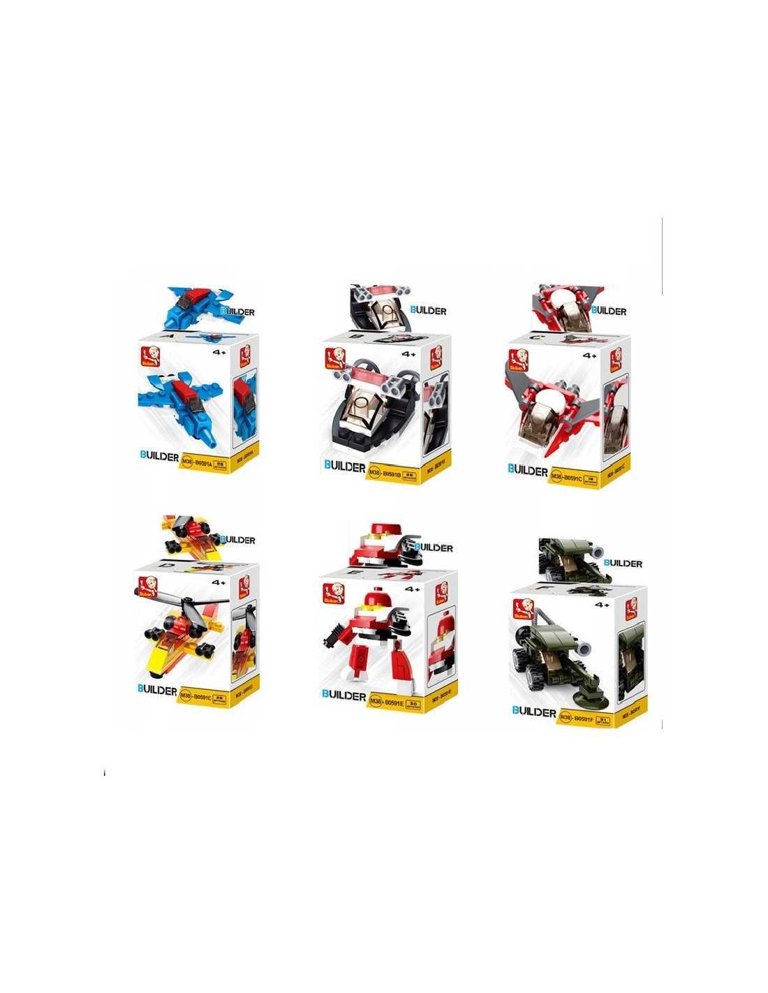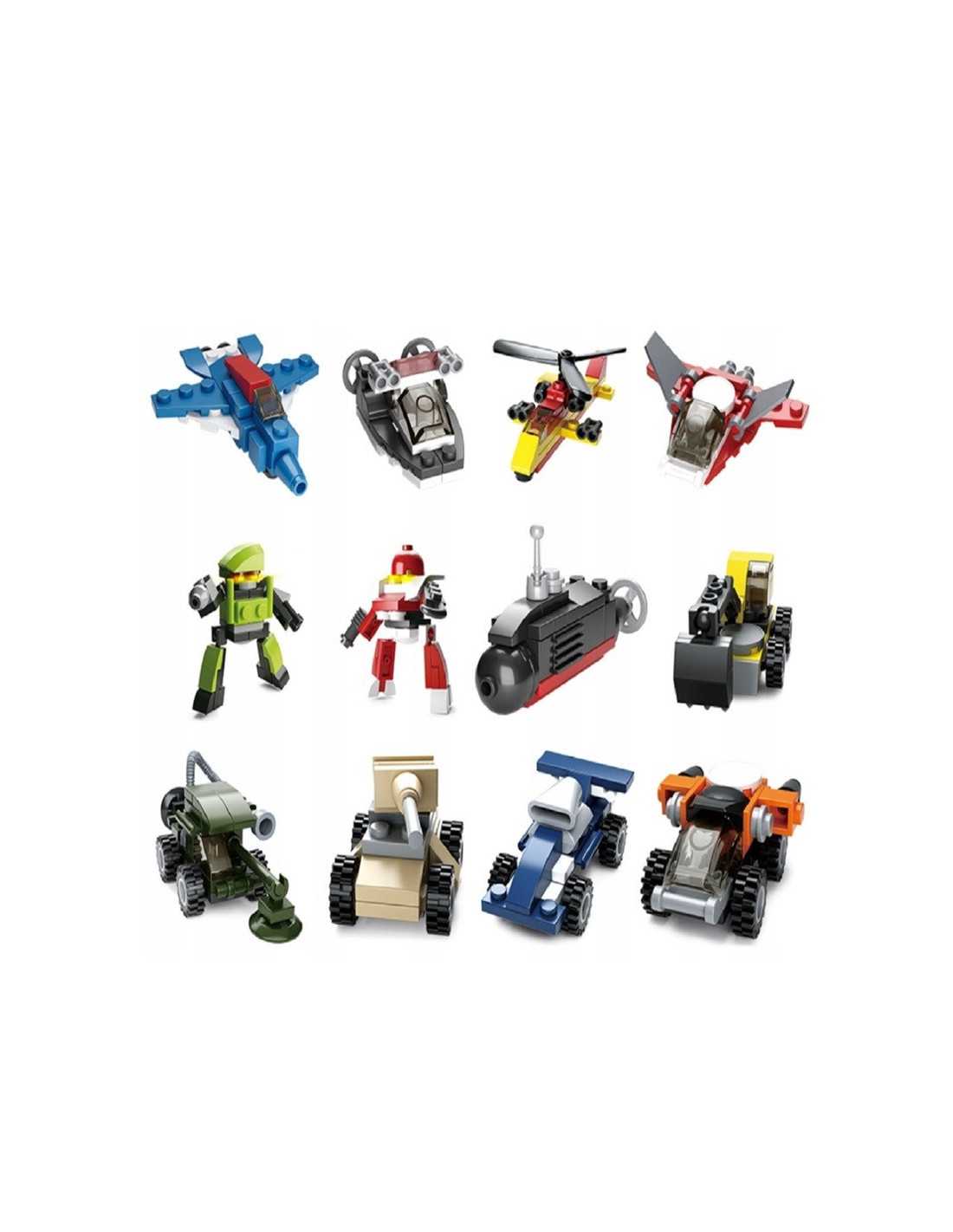 Klocki do składania w kształcie pojazdów i robotów.