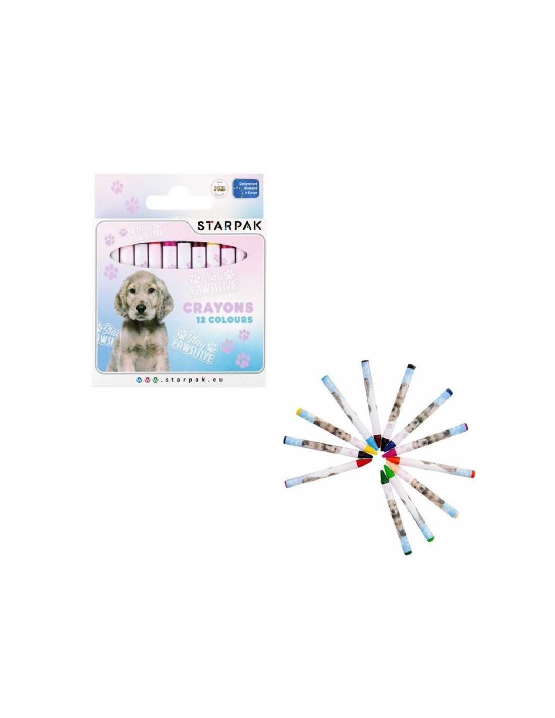 Kolorowe woskowe kredki z grafiką z psiakami.