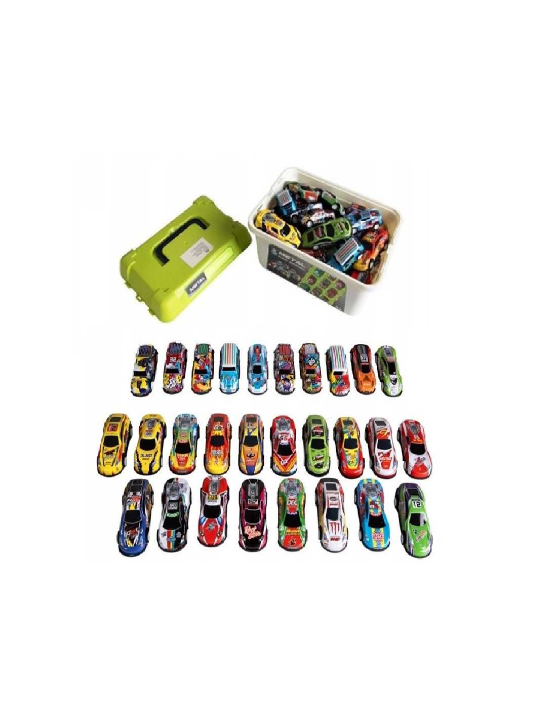 Bogaty zestaw samochodów w eleganckiej skrzynce, ułatwiającej przechowywanie i przenoszenie.