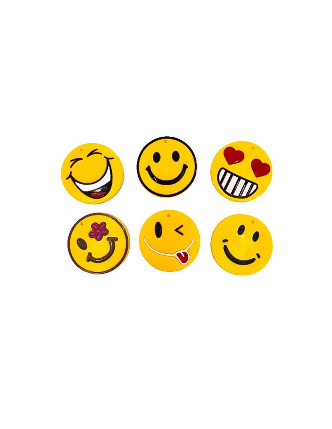 Kolorowy magnes w silikonowej obudowie w kształcie uśmiechniętej buźki.