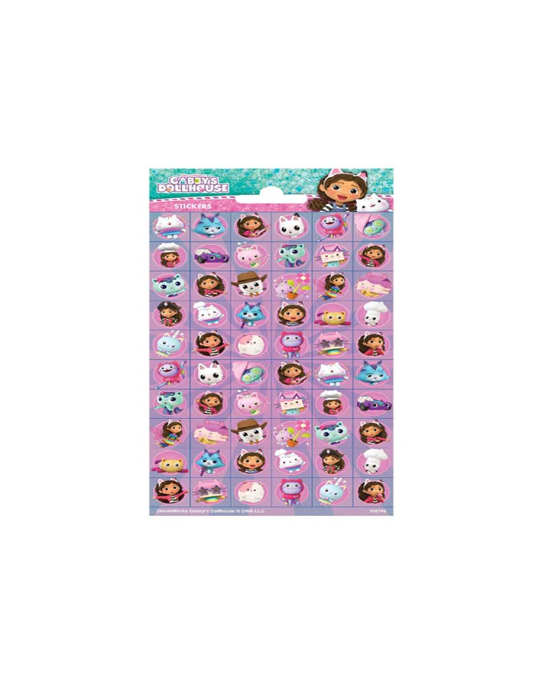 Arkusz z 60 naklejkami z bohaterami bajki Koci domek Gabi.