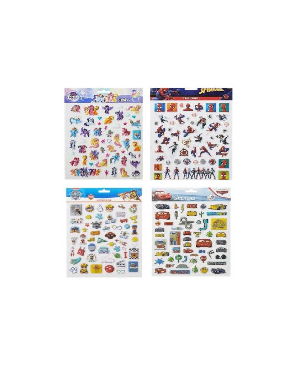 Kolorowe naklejki z bohaterami z popularnych bajek.