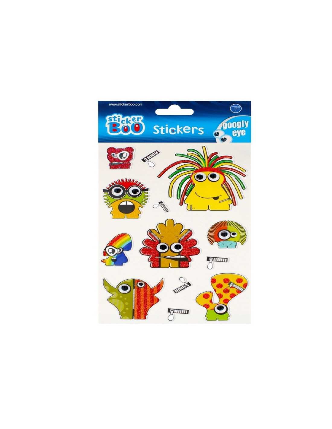 Naklejki STICKER BOO z grafiką w brokatowe potworki z ruchomymi oczami z pewnością przypadną do gustu dzieciakom.