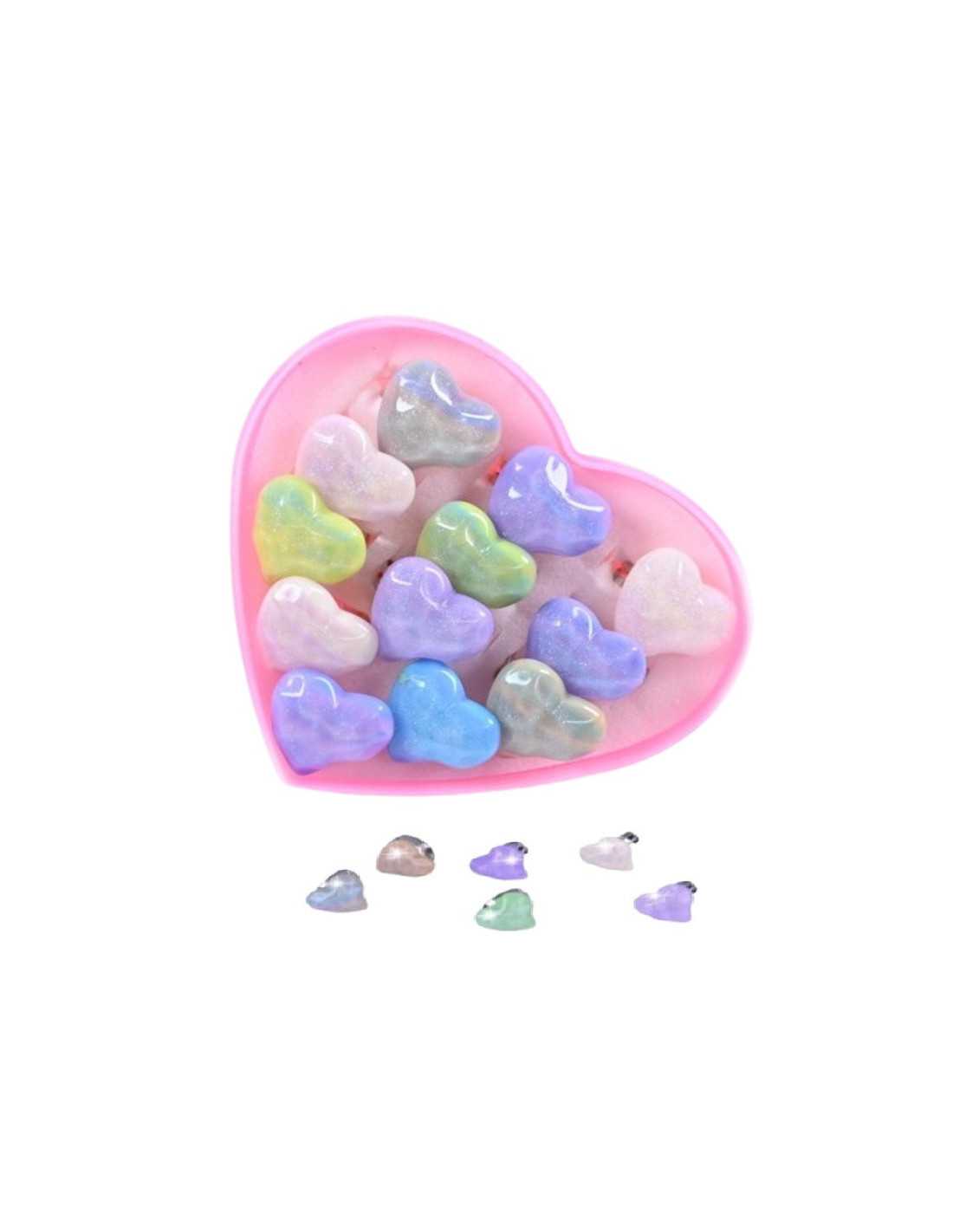 Zestaw pięknych pierścionków dziecięcych z regulacją w różowym pudełeczku w kształcie serca.