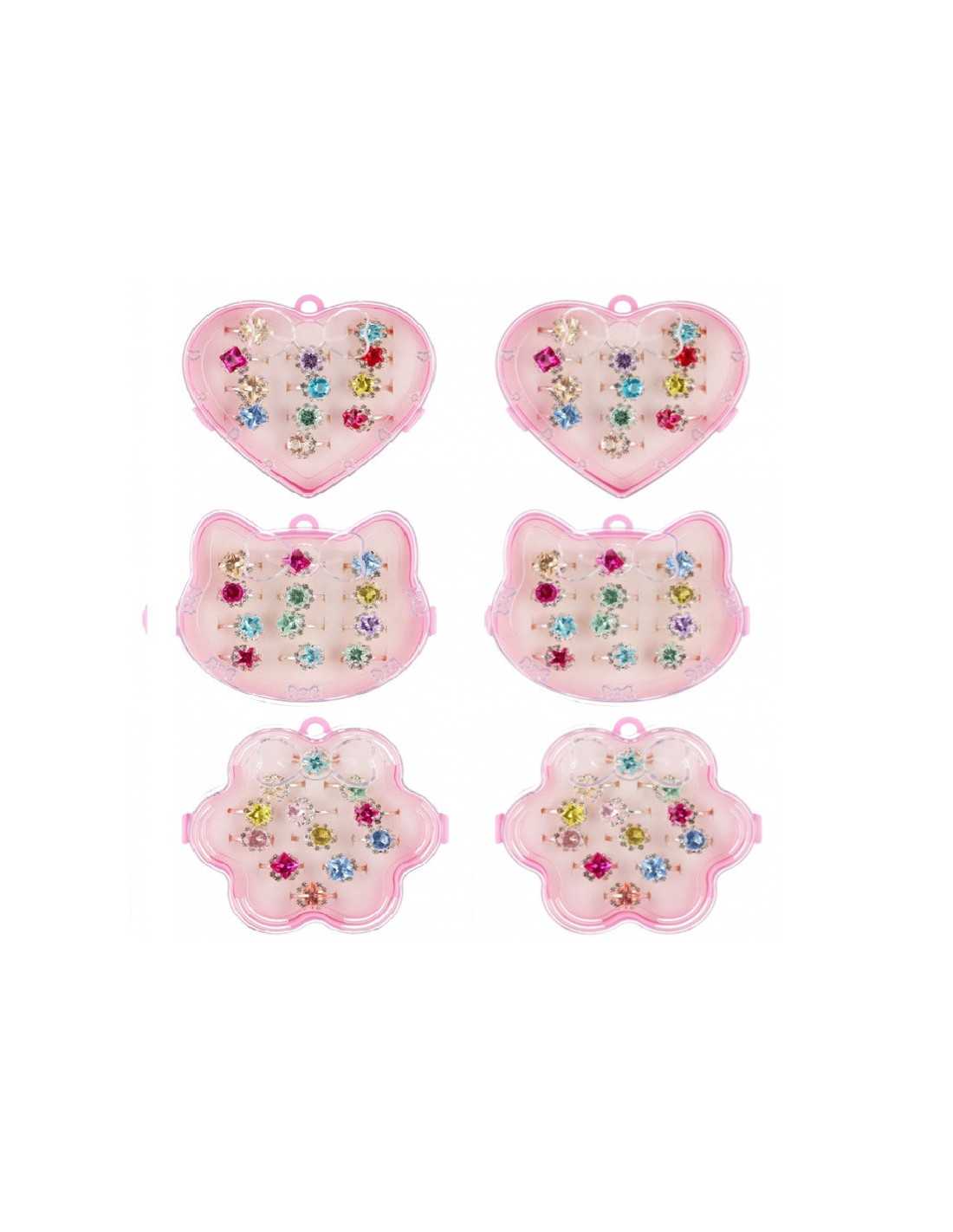 Zestaw pięknych pierścionków dziecięcych z regulacją w różowym pudełeczku.