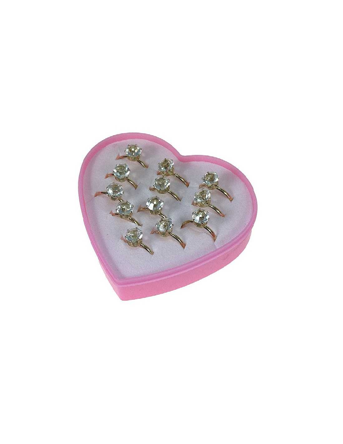 Zestaw pięknych pierścionków dziecięcych z regulacją w różowym pudełeczku.