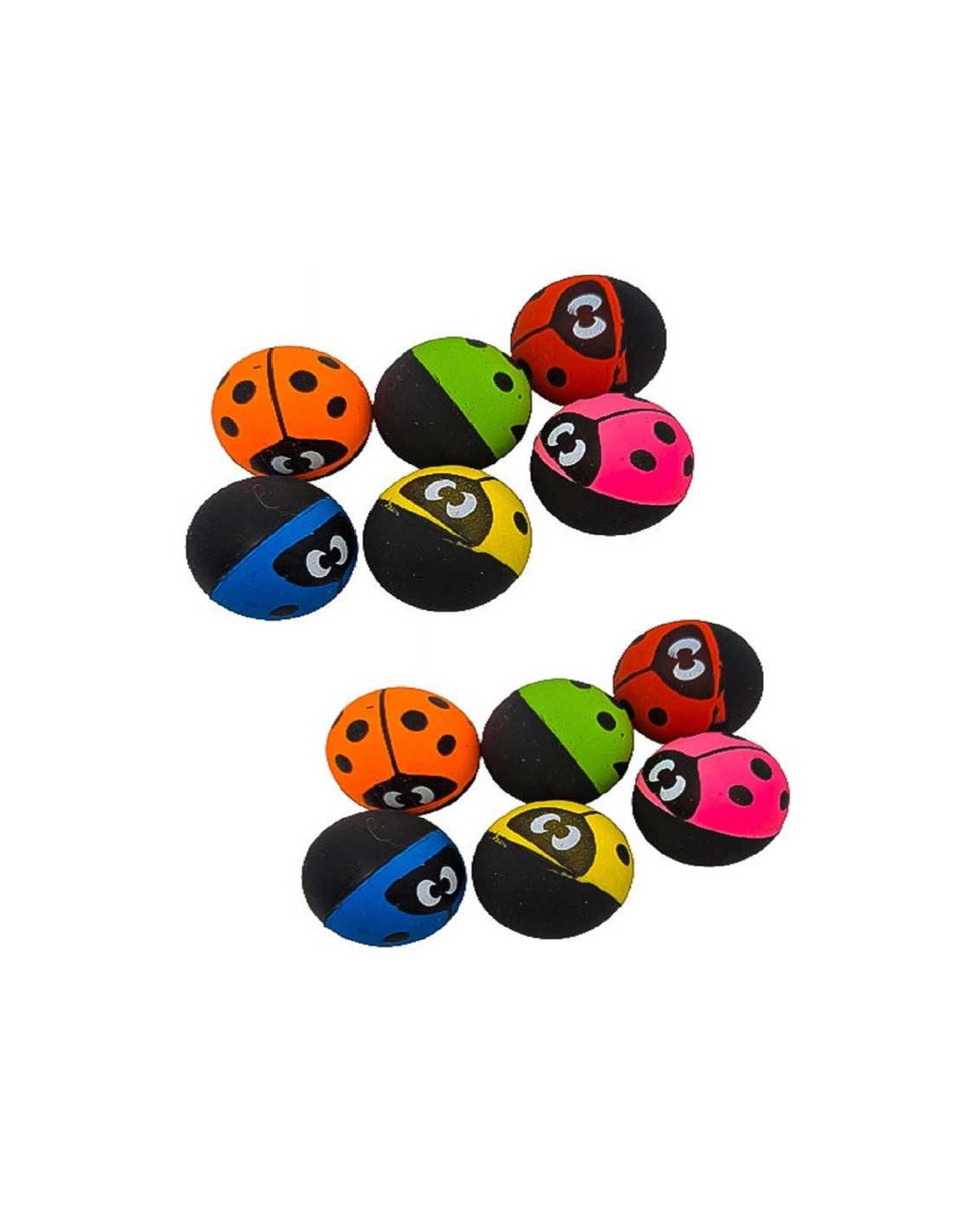 Zestaw kolorowych piłeczek kauczukowych z grafiką biedronki (3 cm).