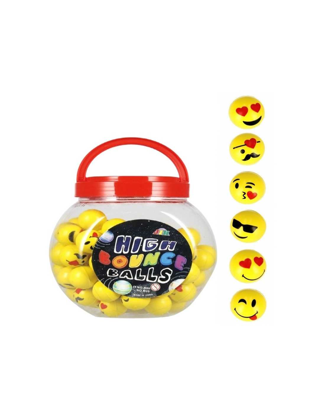Kolorowa piłeczka kauczukowa z emotkami.