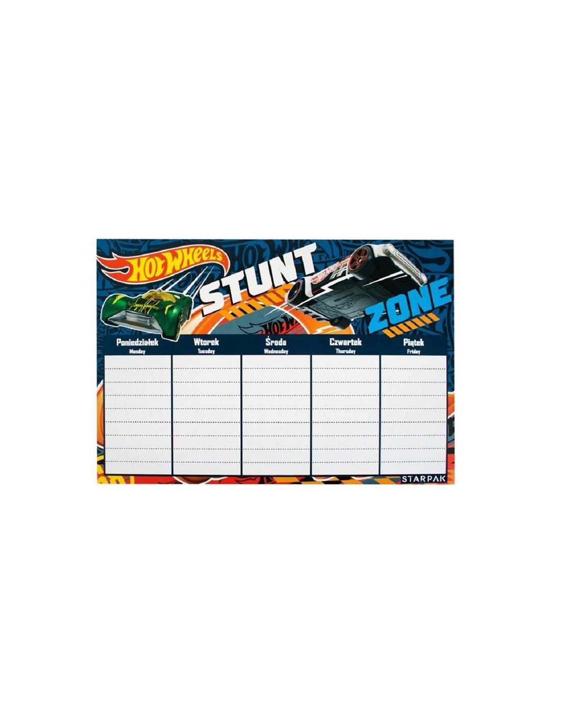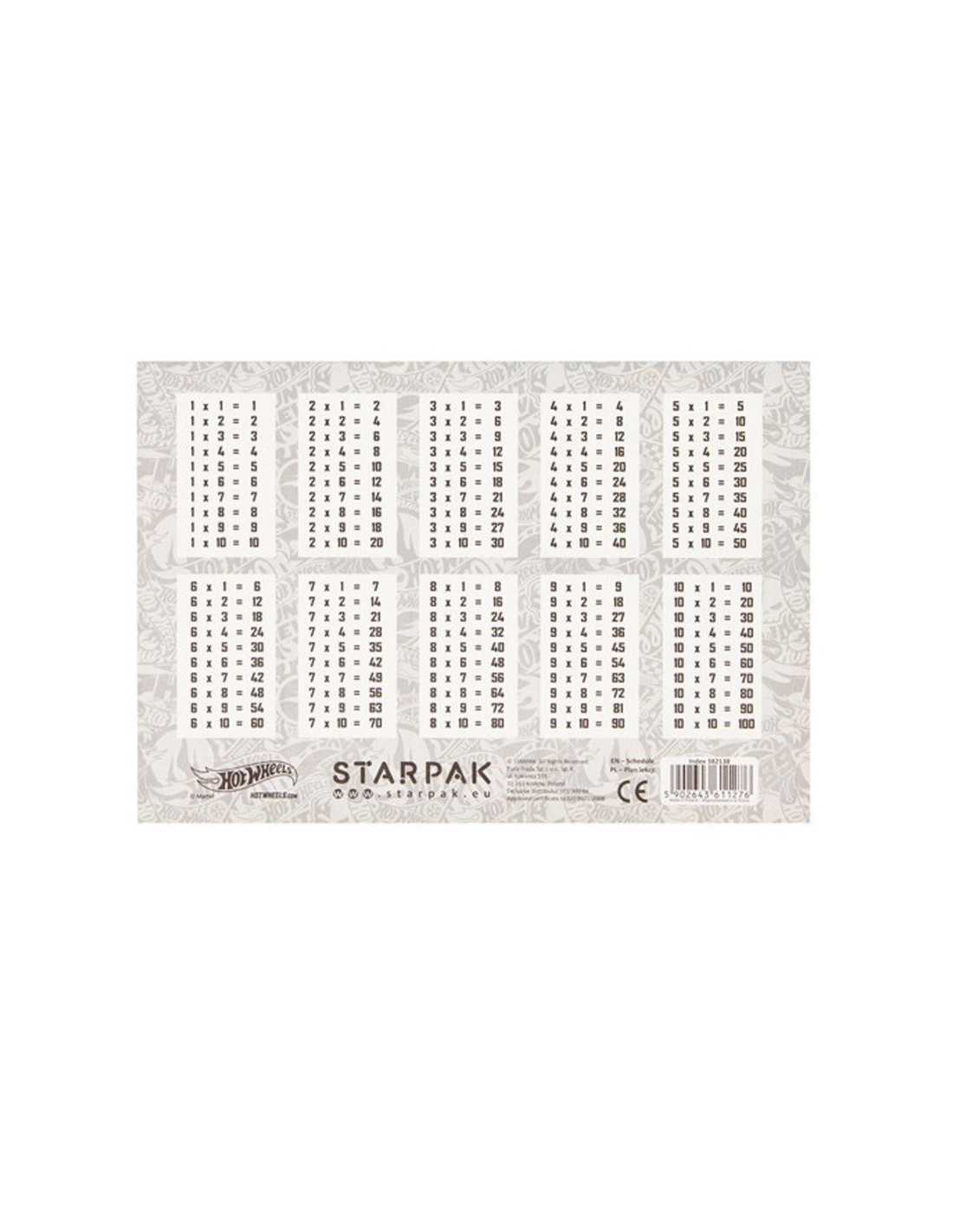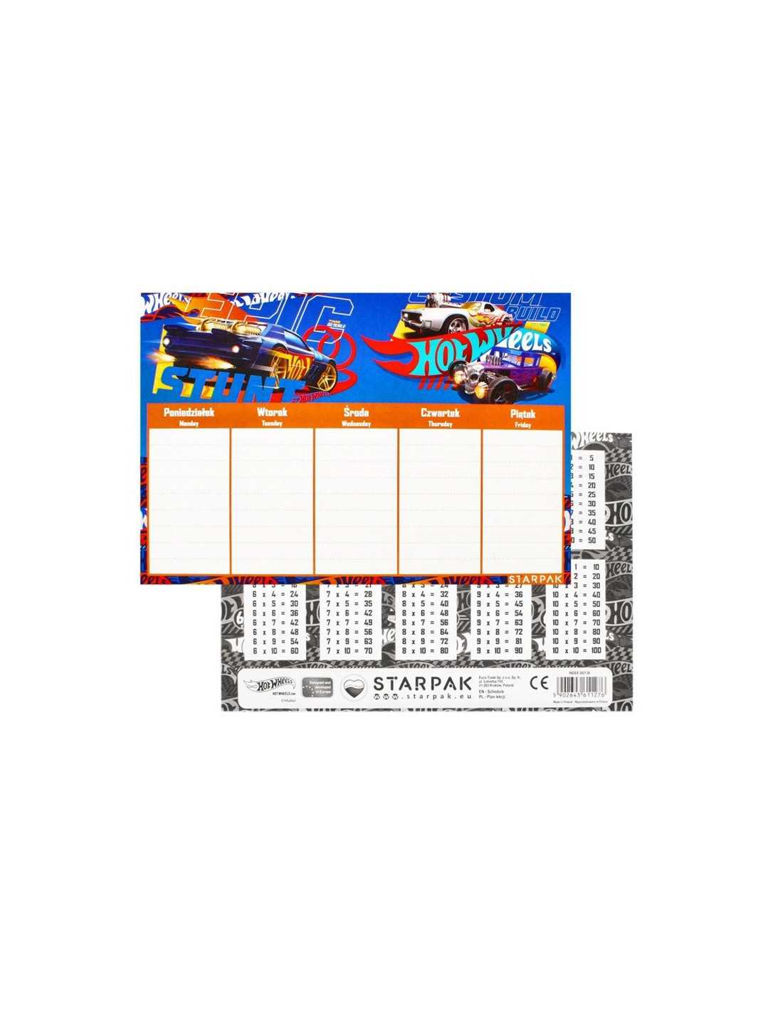 Plan Lekcji z Tabliczką Mnożenia A5 Hotwheels.