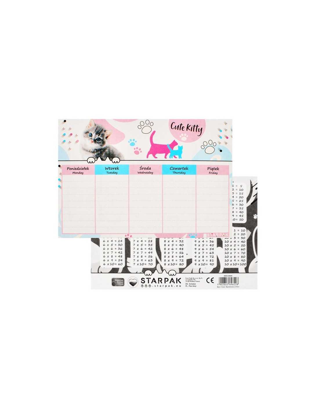 Plan Lekcji z Tabliczką Mnożenia A5 Kotki.