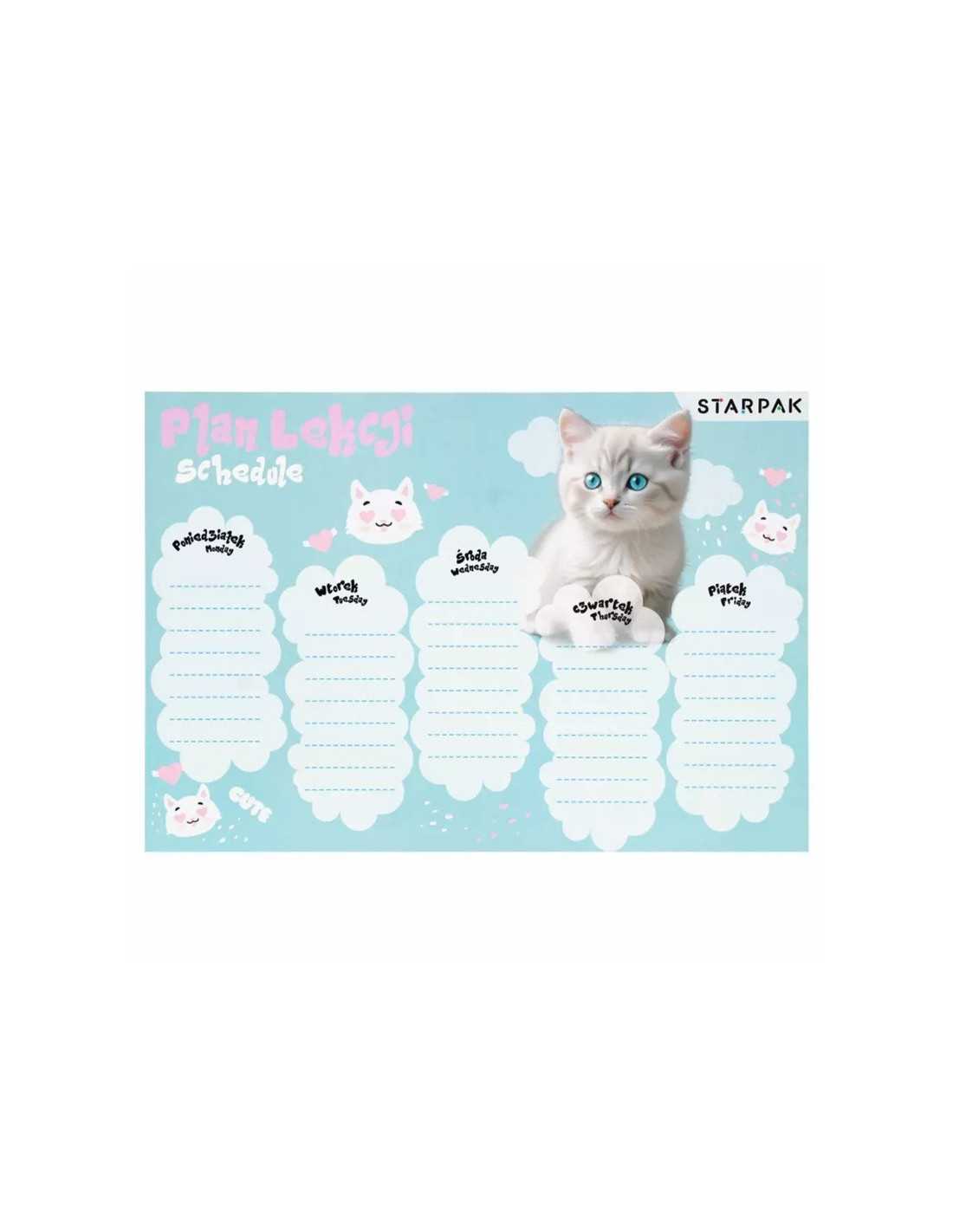 Grafika z kociakami sprawi, że każdy dzień w szkole będzie dobrze zaplanowany i udany.