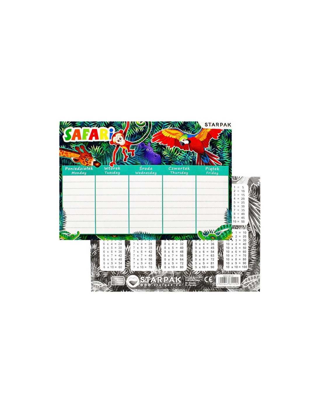 Plan Lekcji z Tabliczką Mnożenia A5 Safari.
