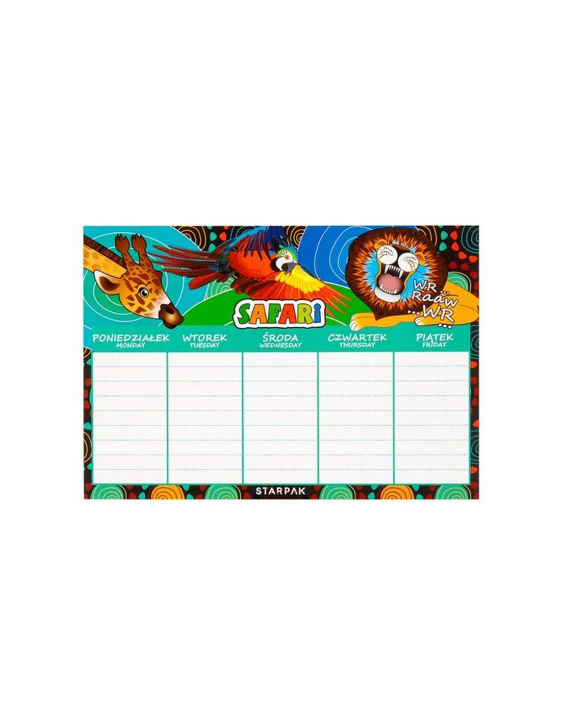Grafika z motywem safari sprawi, że każdy dzień w szkole będzie dobrze zaplanowany i udany.