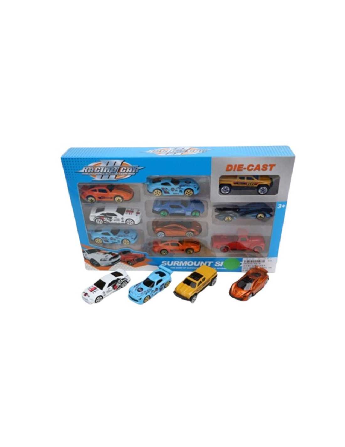 Zestaw kolorowych metalowych pojazdów.