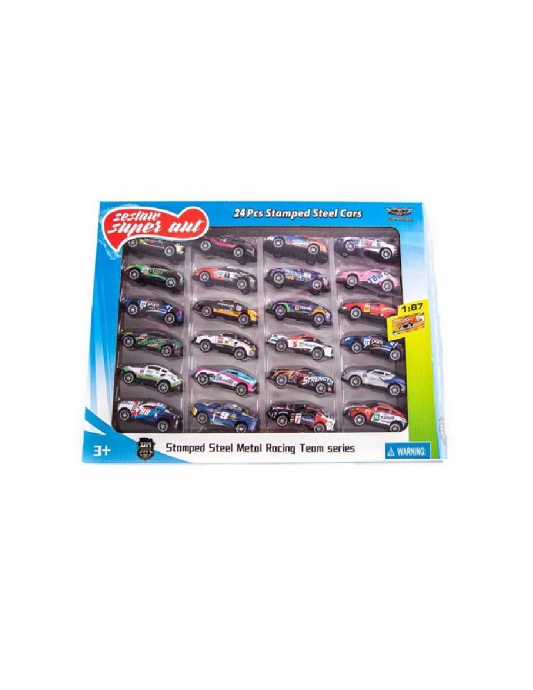 Zestaw kolorowych metalowych pojazdów.