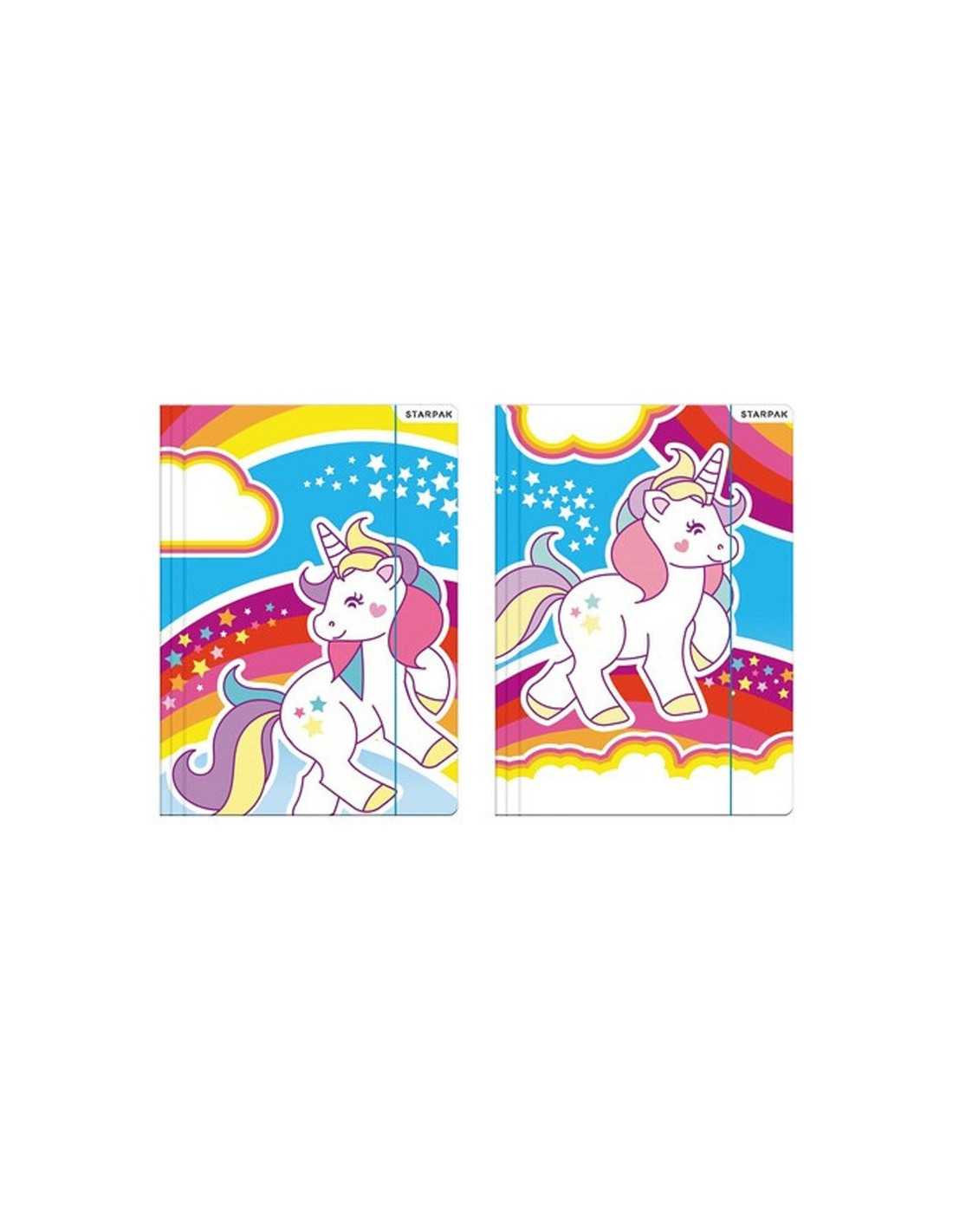 Teczka jest laminowana, dzięki temu bardziej trwała i ozdobiona kolorową grafiką.