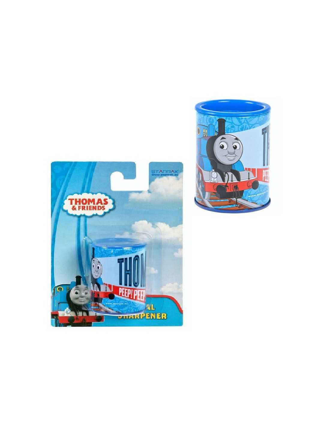 Temperówka z zasobnikiem na strużyny, w formie lśniącego kubeczka z lakierowanej blachy zdobionego grafiką z ulubionymi bohaterami "THOMAS TANK".