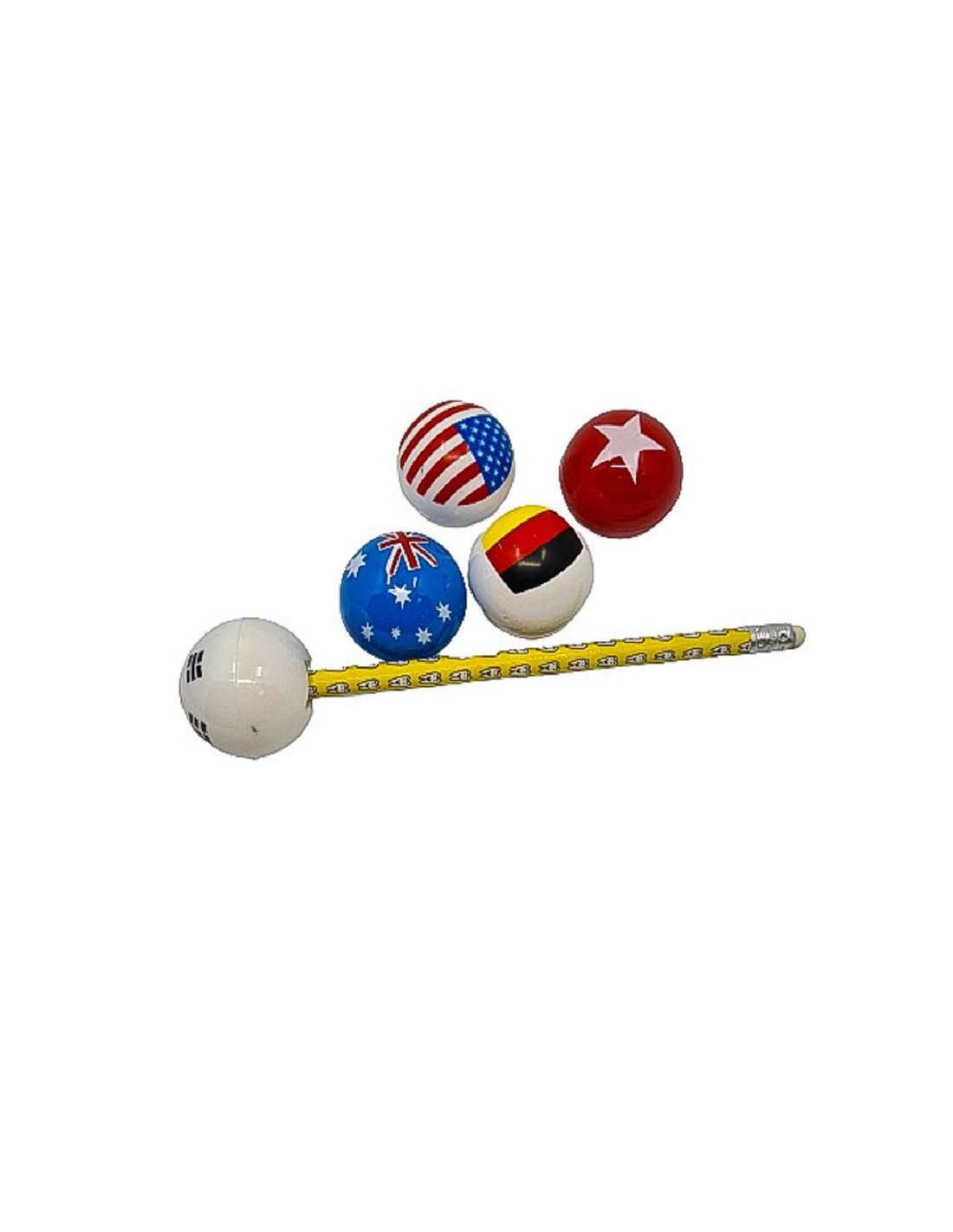 Temperówka szkolna w kształcie kuli z obrazkiem flagi.