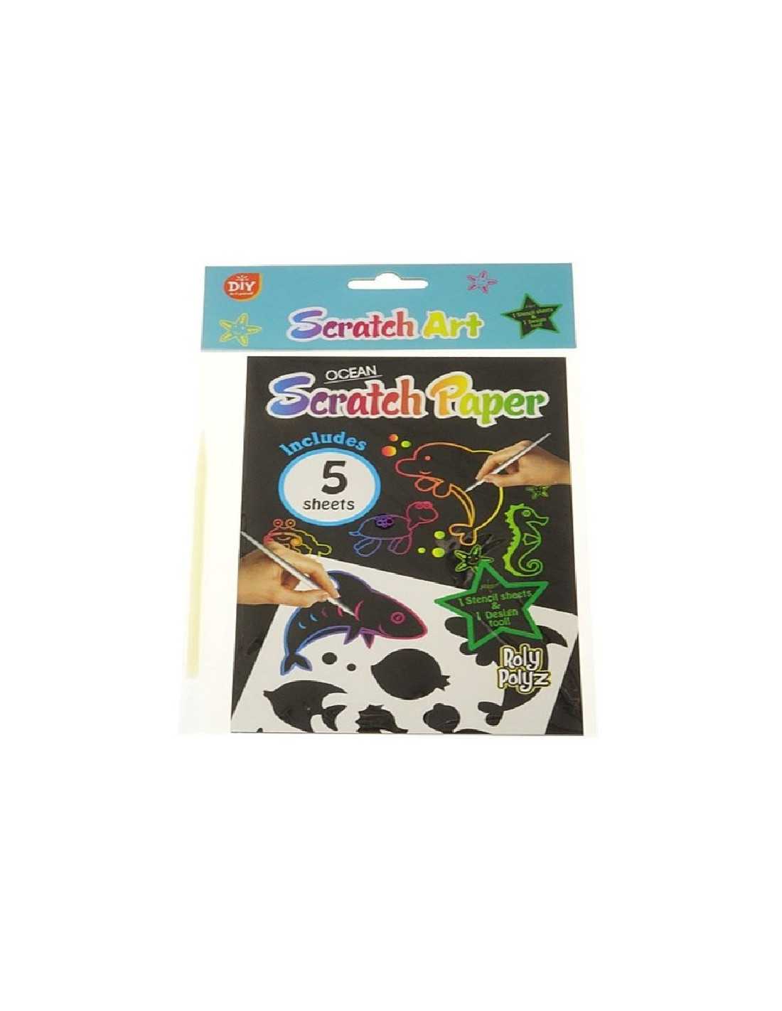 Zestaw składa się z pięciu arkuszy, które są pokryte specjalnym materiałem do zdrapywania.