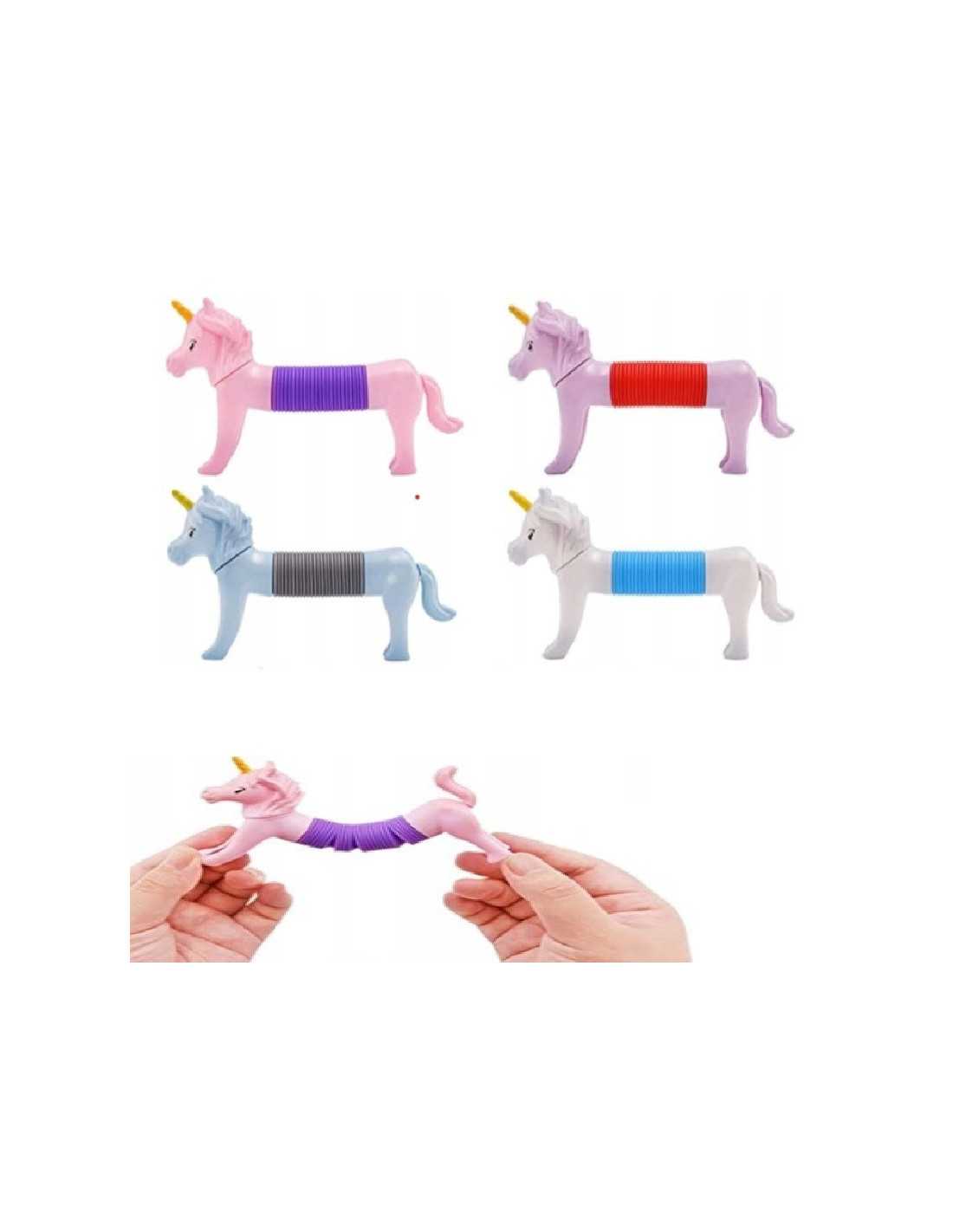 Kolorowa figurka jednorożca, którą można rozciągać i wyginać.