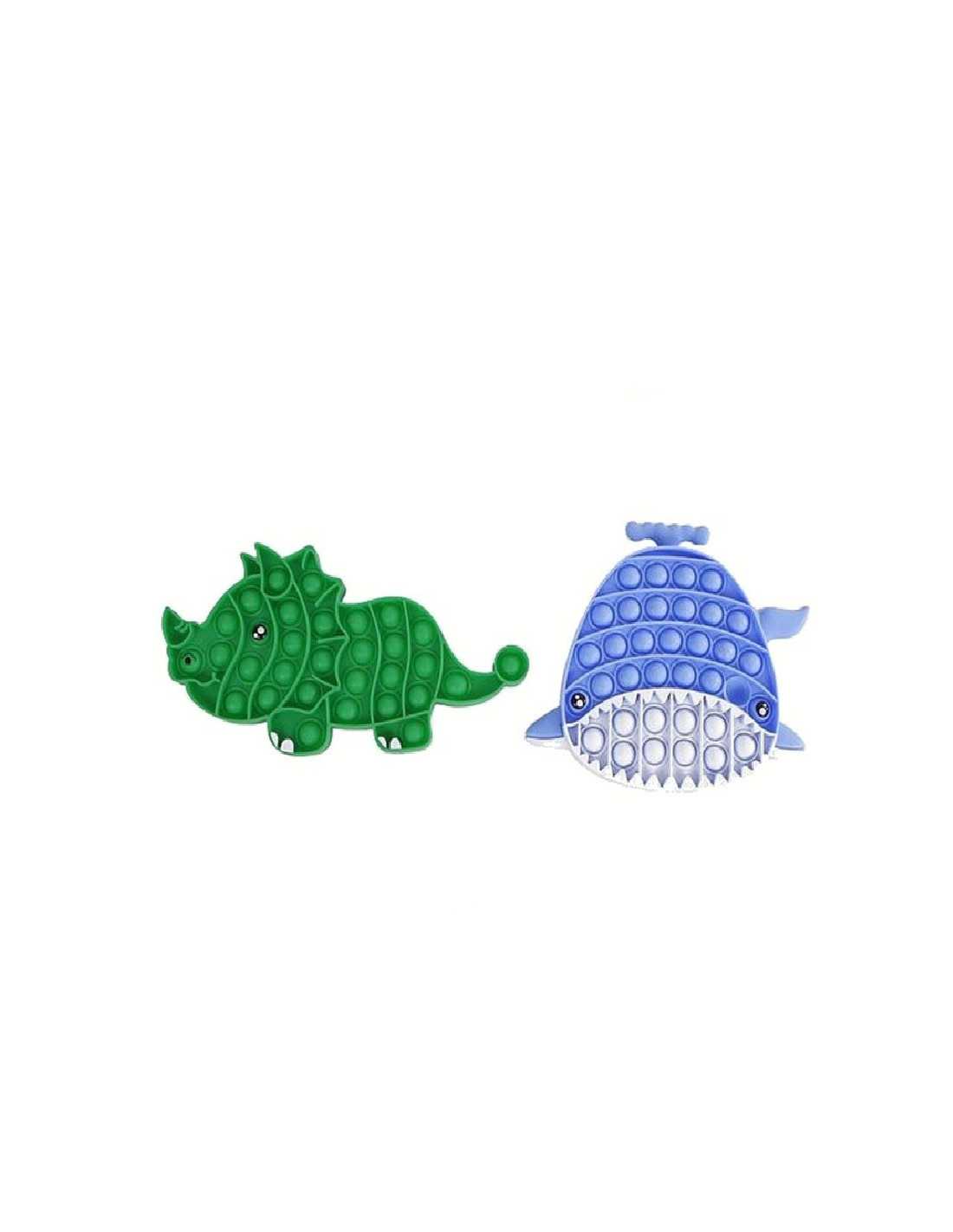 Wykonana jest z przyjemnej w dotyku gumy o kształcie wieloryba o wymiarach 19x16cm oraz o kształcie dinozaura o wymiarach 26x13cm.