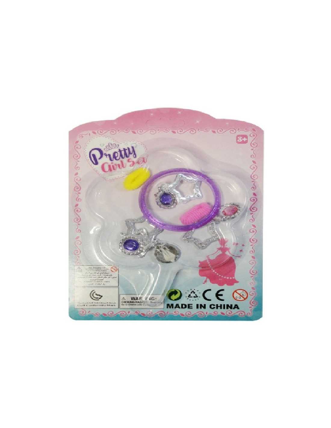 Zestaw kolorowej biżuterii dla dzieci. W skład zestawu wchodzą 2 pary wiszących kolczyków, bransoletka i kolorowe gumki do włosów.