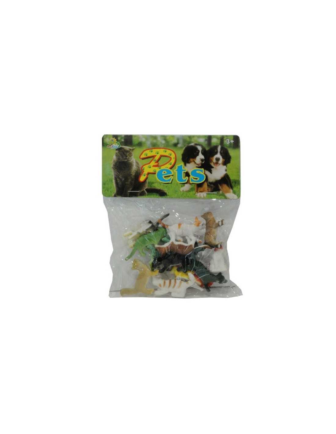 Zestaw 12 figurek przedstawiających pieski i koty.