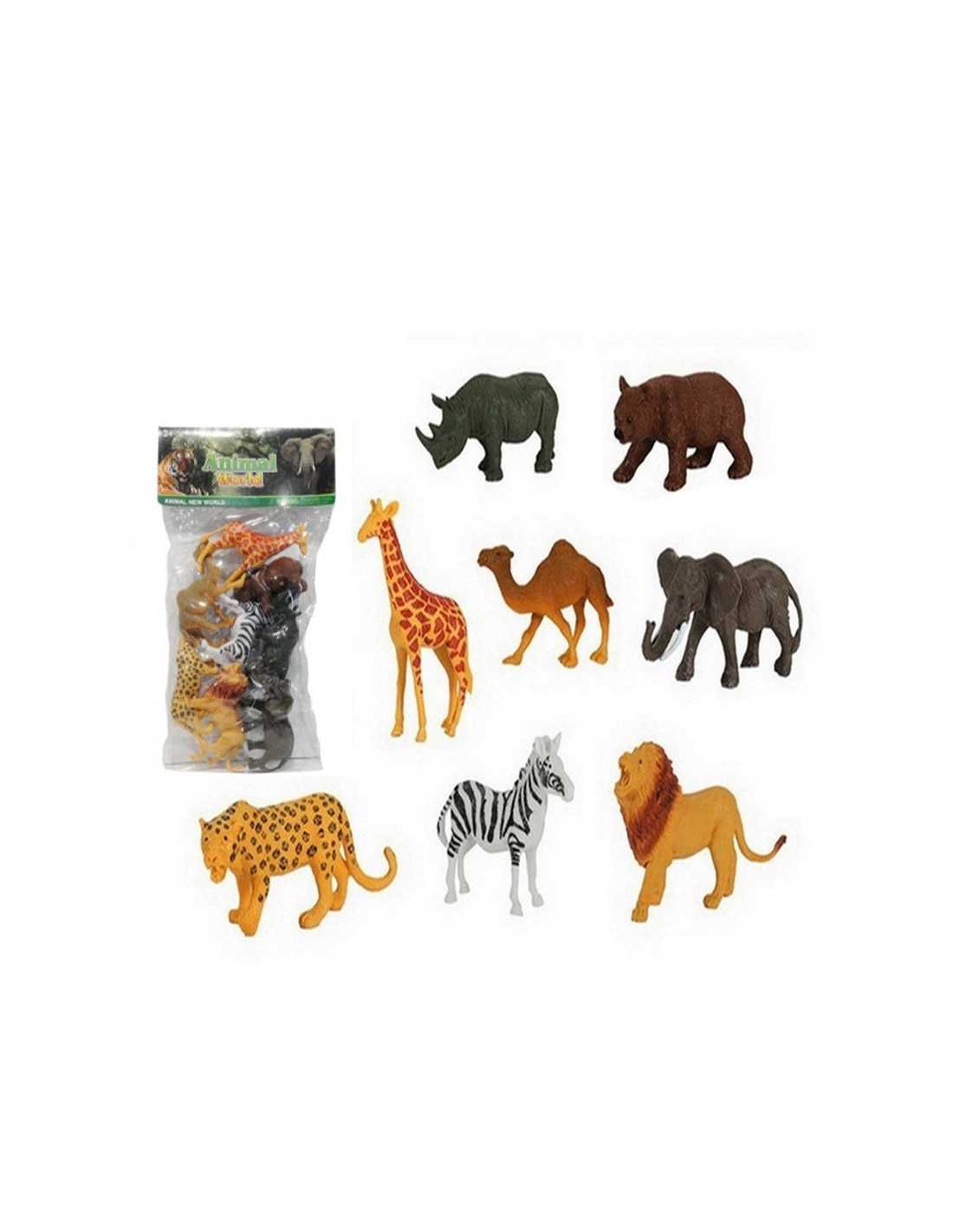 Zestaw 8 figurek przedstawiających dzikie zwierzęta.