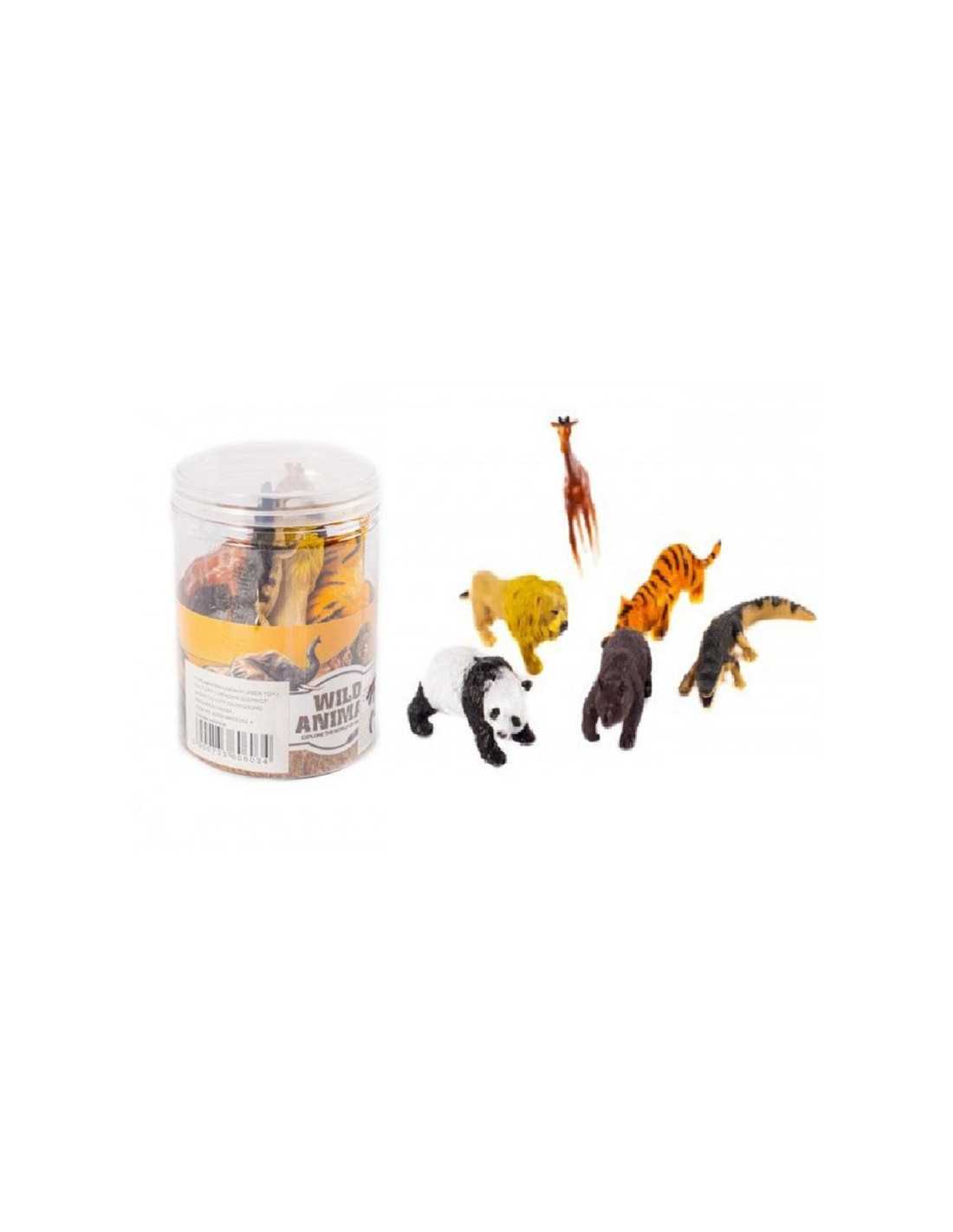 Zestaw 6 figurek przedstawiających dzikie zwierząt zapakowane w tubie.